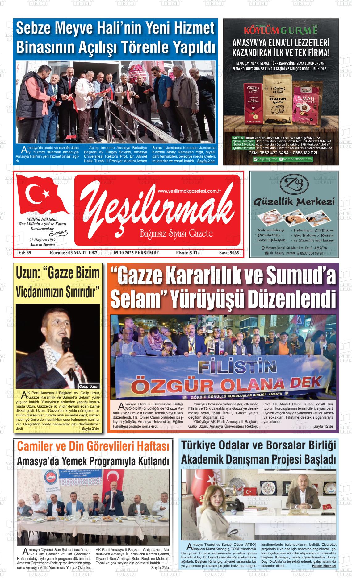 Amasya Yerel Gazeteleri 03 Ekim 2025, Cuma Günü Manşeti